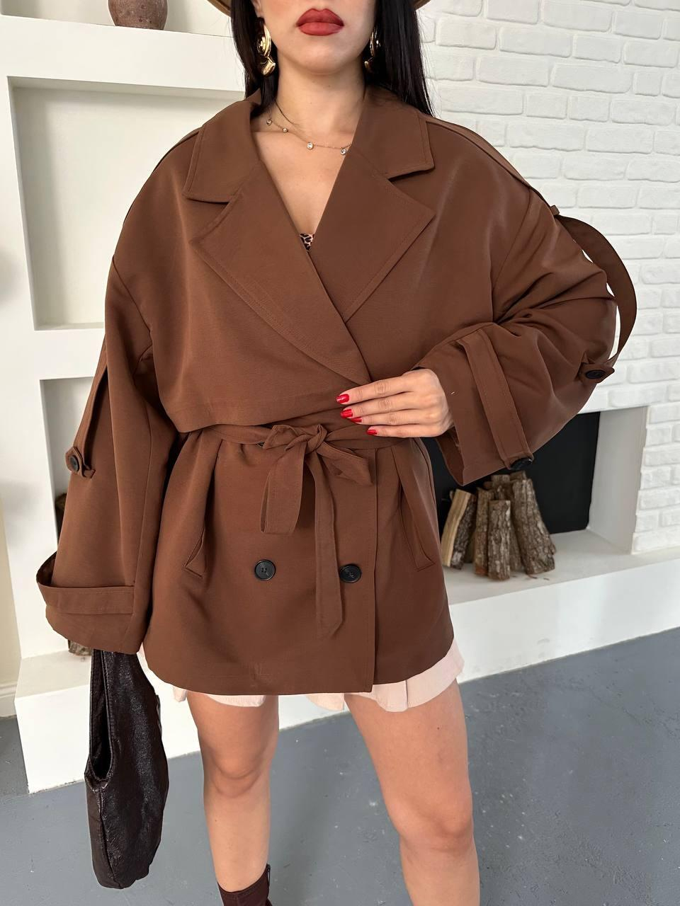 Acı Kahve Dizüstü Düğmeli Bağlamalı Trenç