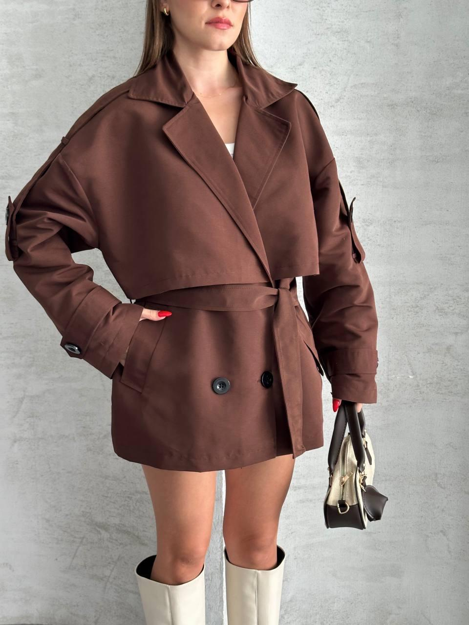 Acı Kahve Poliviskon Dizüstü Düğmeli Bağlamalı Trenç