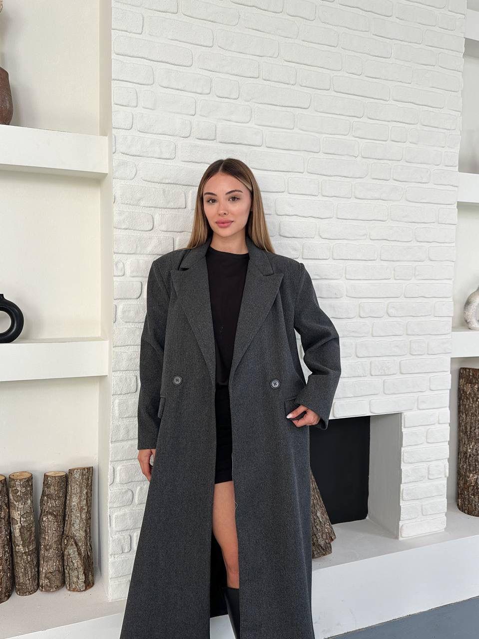 Antrasit Düğmeli Klasik Maxi Boy Kaşe Kaban