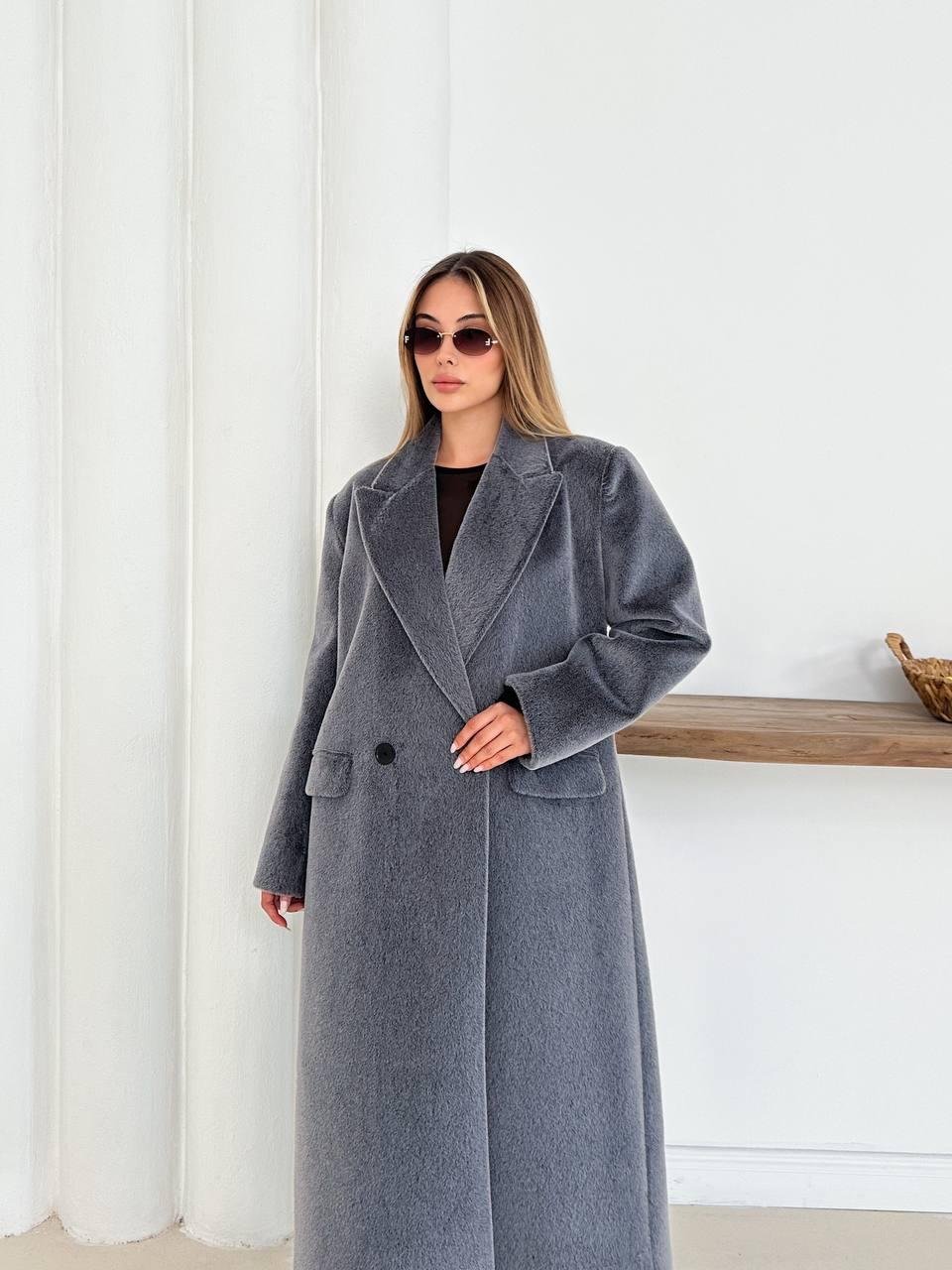Antrasit Yumuşak Kaşmir Dokulu Maskülen Maxi Kaban