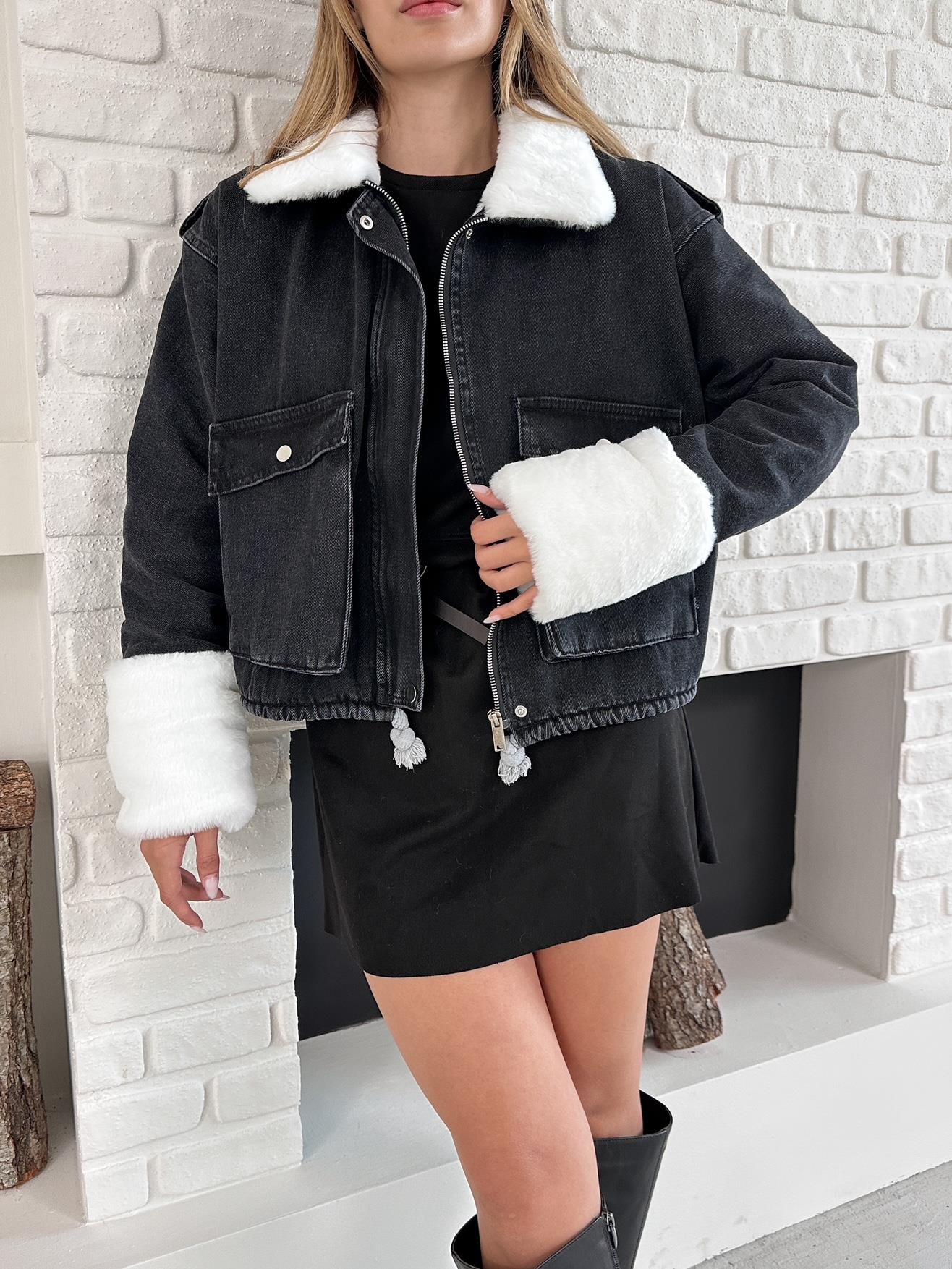 Beyaz Yeni Sezon İçi Peluş Denim Mont