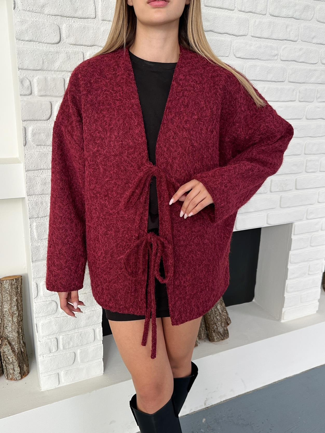 Bordo Çift Bağcıklı Kırçıllı Ceket