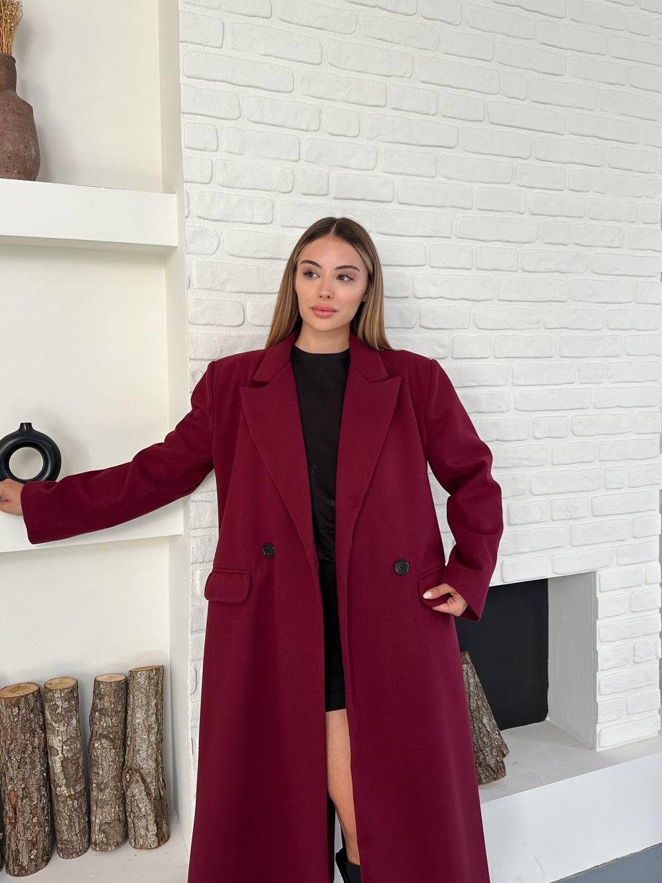 Bordo Düğmeli Klasik Maxi Boy Kaşe Kaban