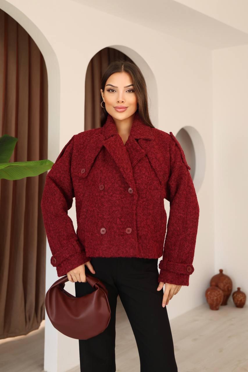Bordo Kemerli Buklet Crop Ceket