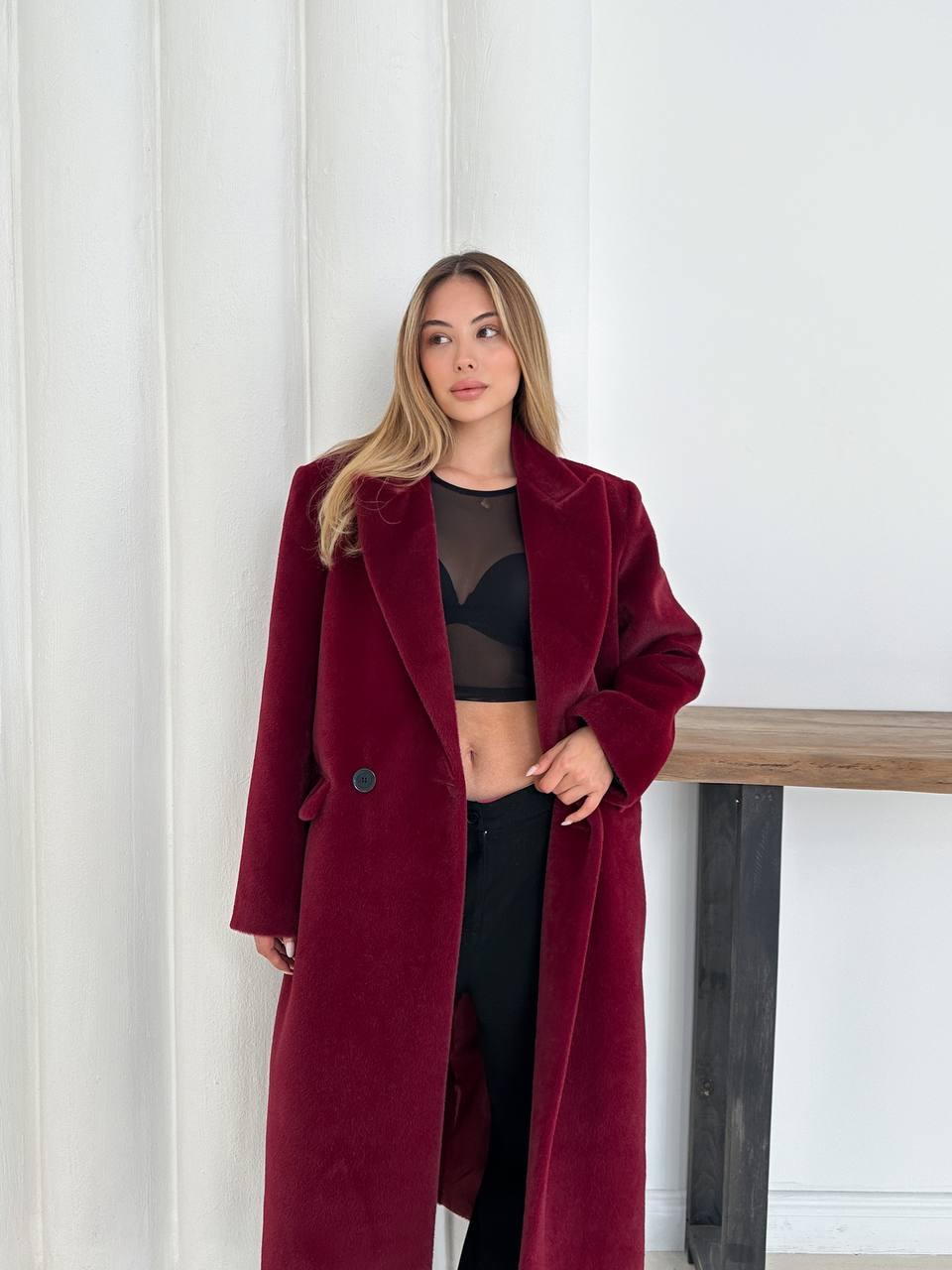 Bordo Yumuşak Kaşmir Dokulu Maskülen Maxi Kaban