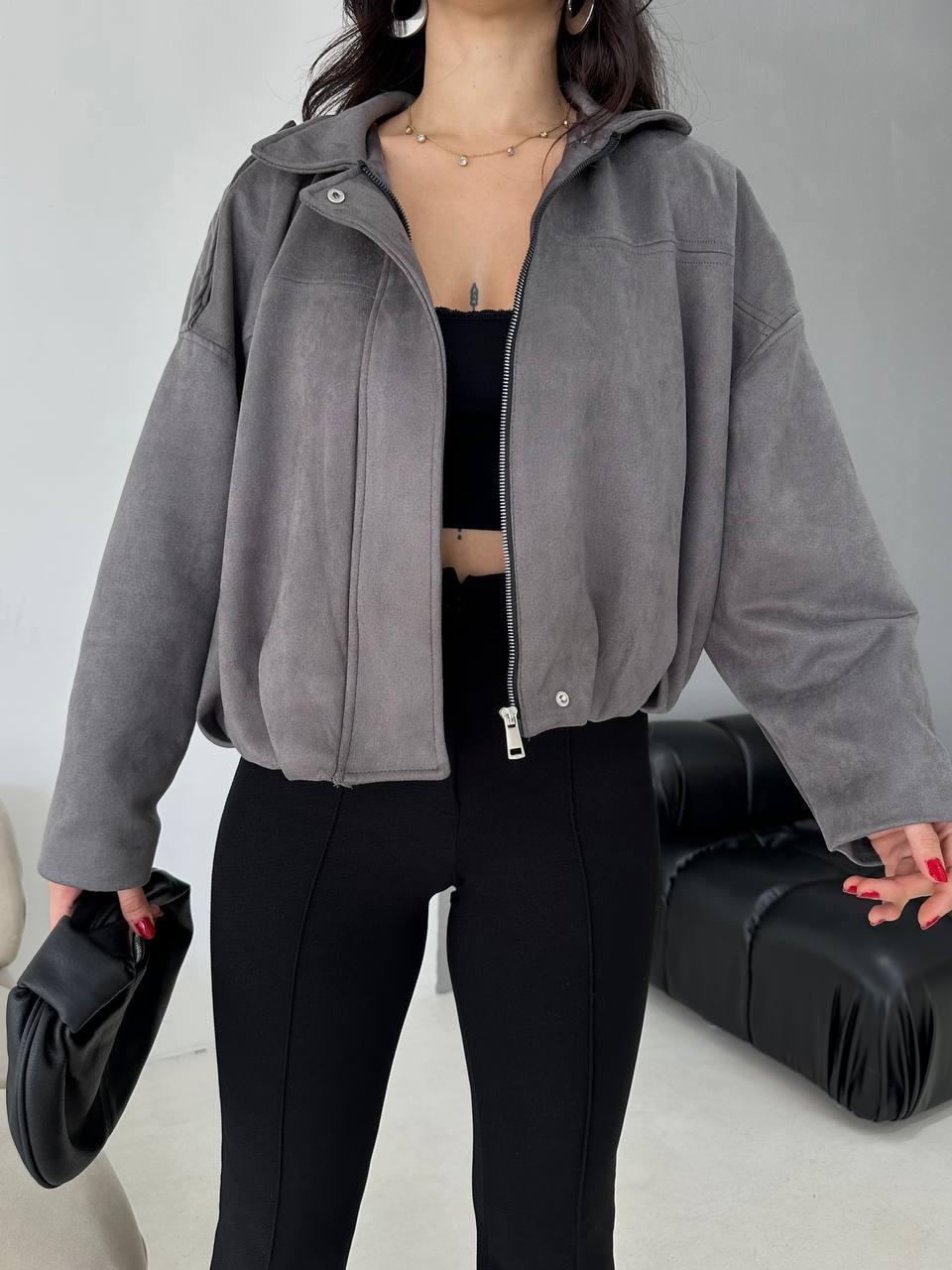 Gri Bomber Oversize Süet Ceket