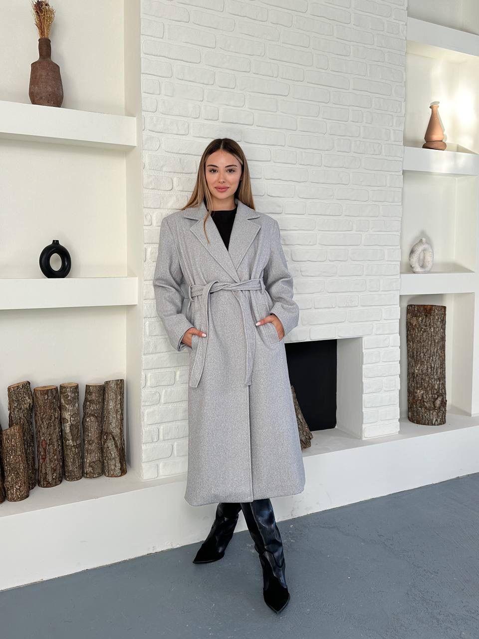 Gri Kuşaklı Astarlı Maxi Boy Kaşe Kaban