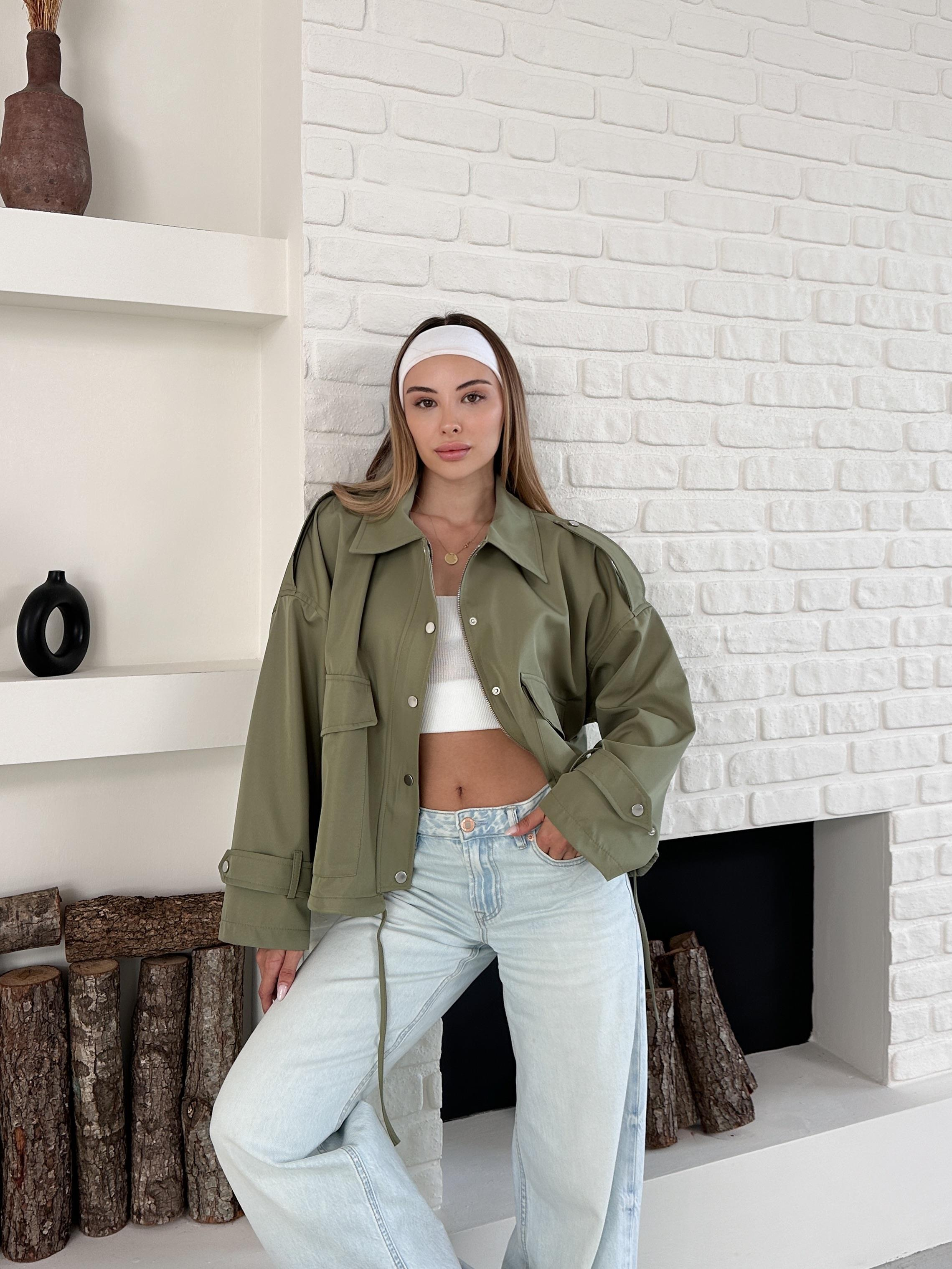 Haki Bondit Cepli Patlı Crop Baharlık Ceket