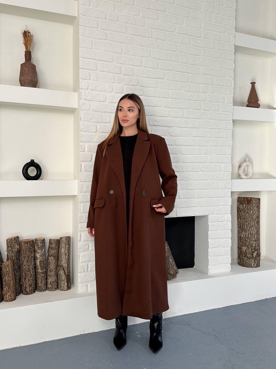 Kahverengi Düğmeli Klasik Maxi Boy Kaşe Kaban