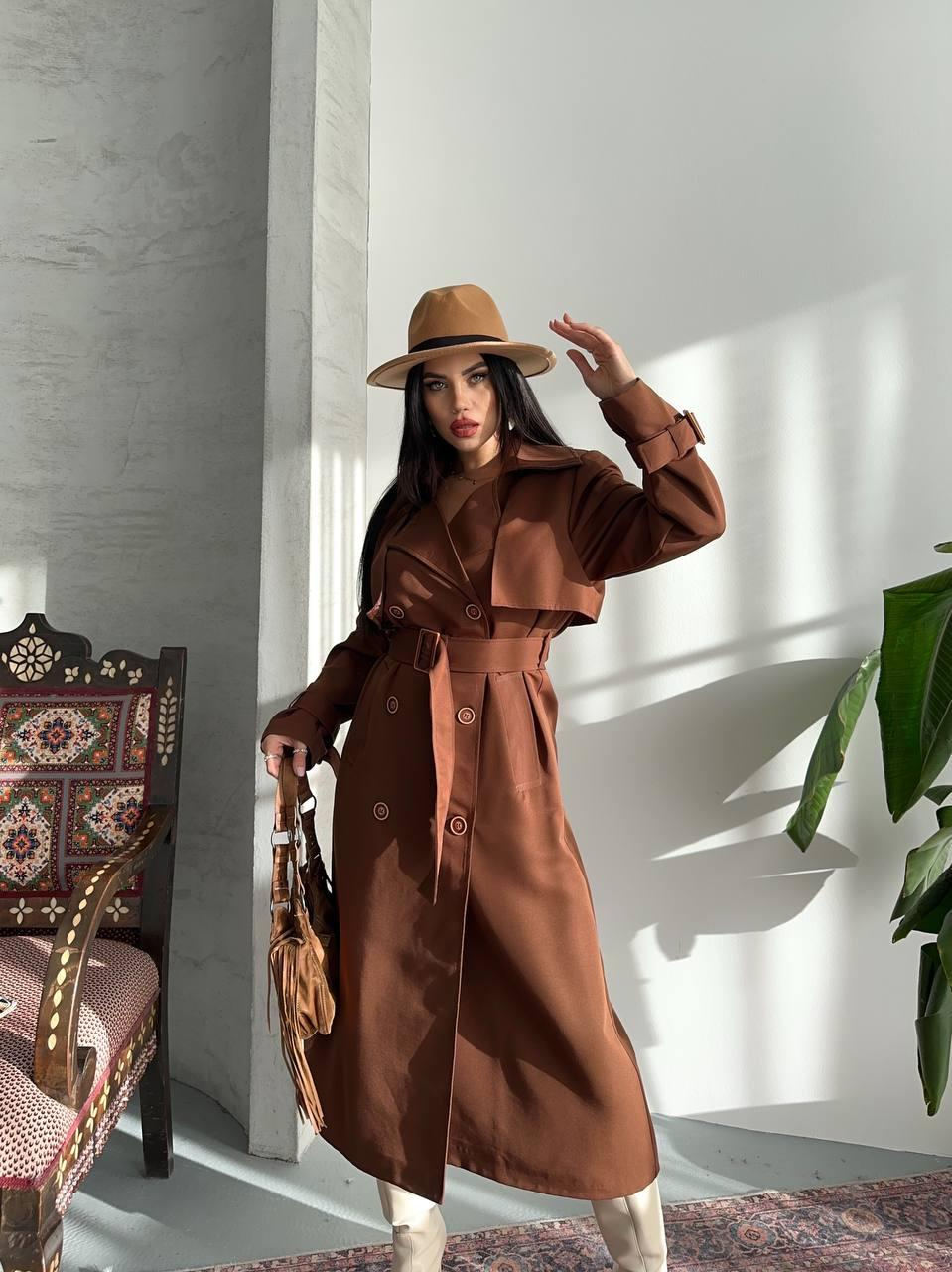 Kahverengi Tokalı Düğmeli Kruvaze Trençkot