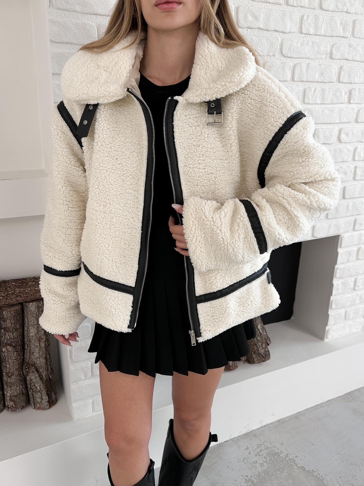 Krem Peluş Fermuarlı Oversize Kuzu Mont