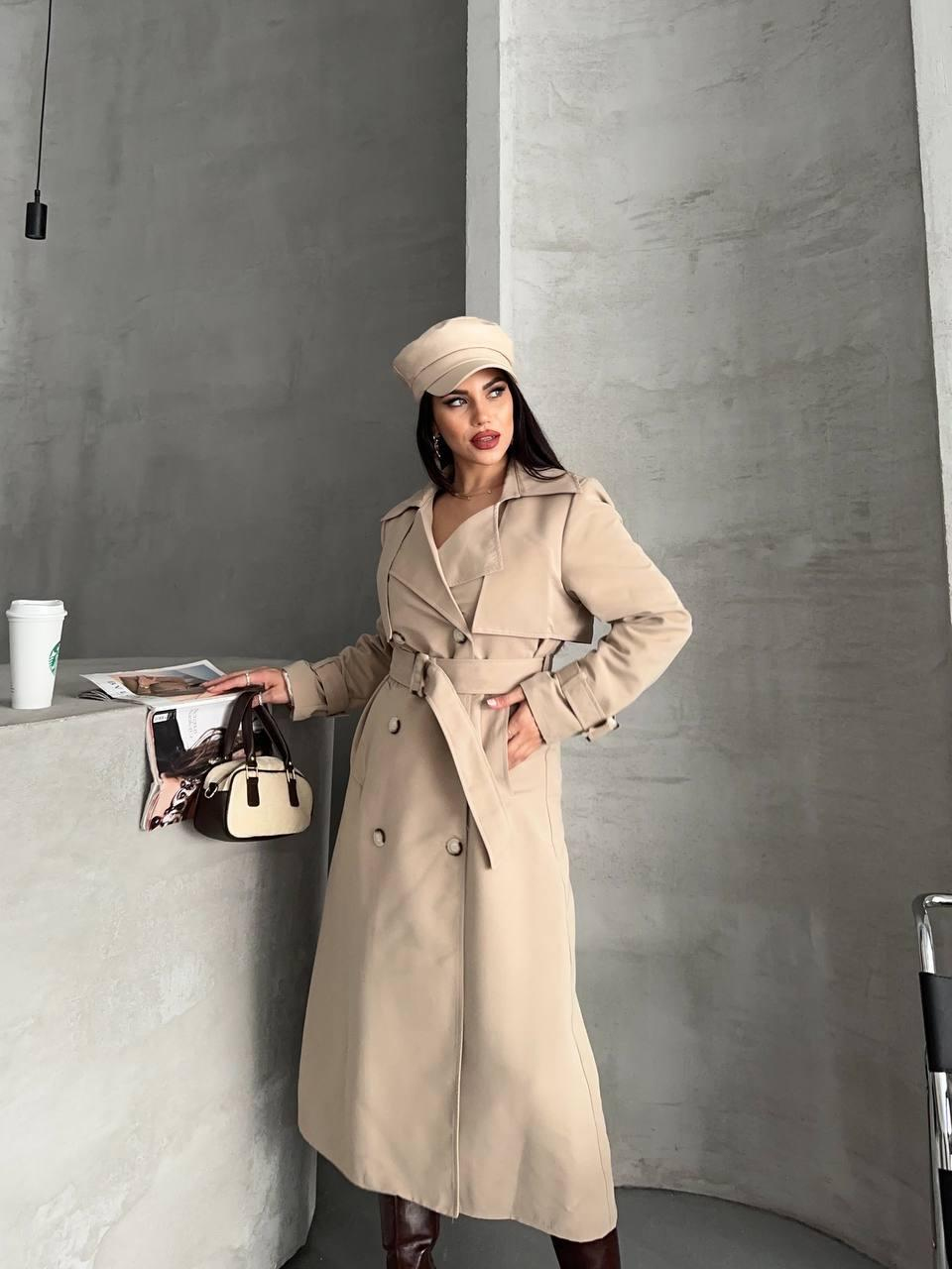 Krem Tokalı Düğmeli Kruvaze Trençkot
