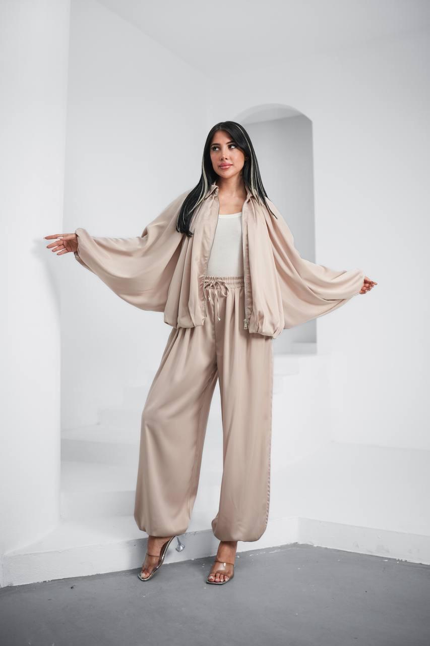 Krem Yarasa Kol Saten Takım