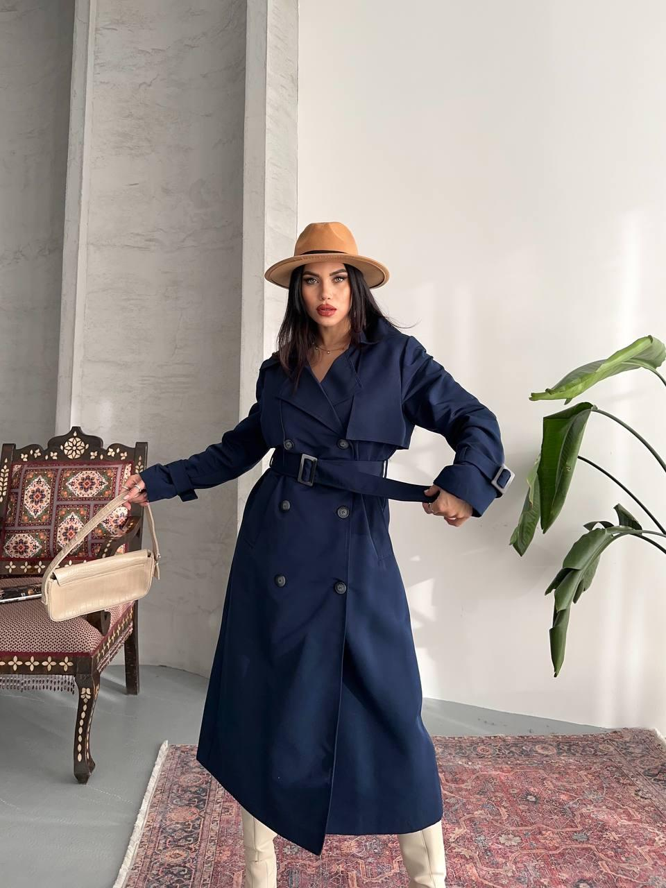 Lacivert Tokalı Düğmeli Kruvaze Trençkot