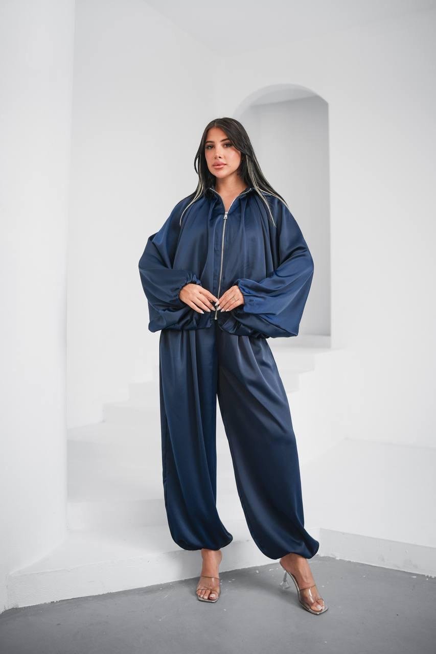 Lacivert Yarasa Kol Saten Takım