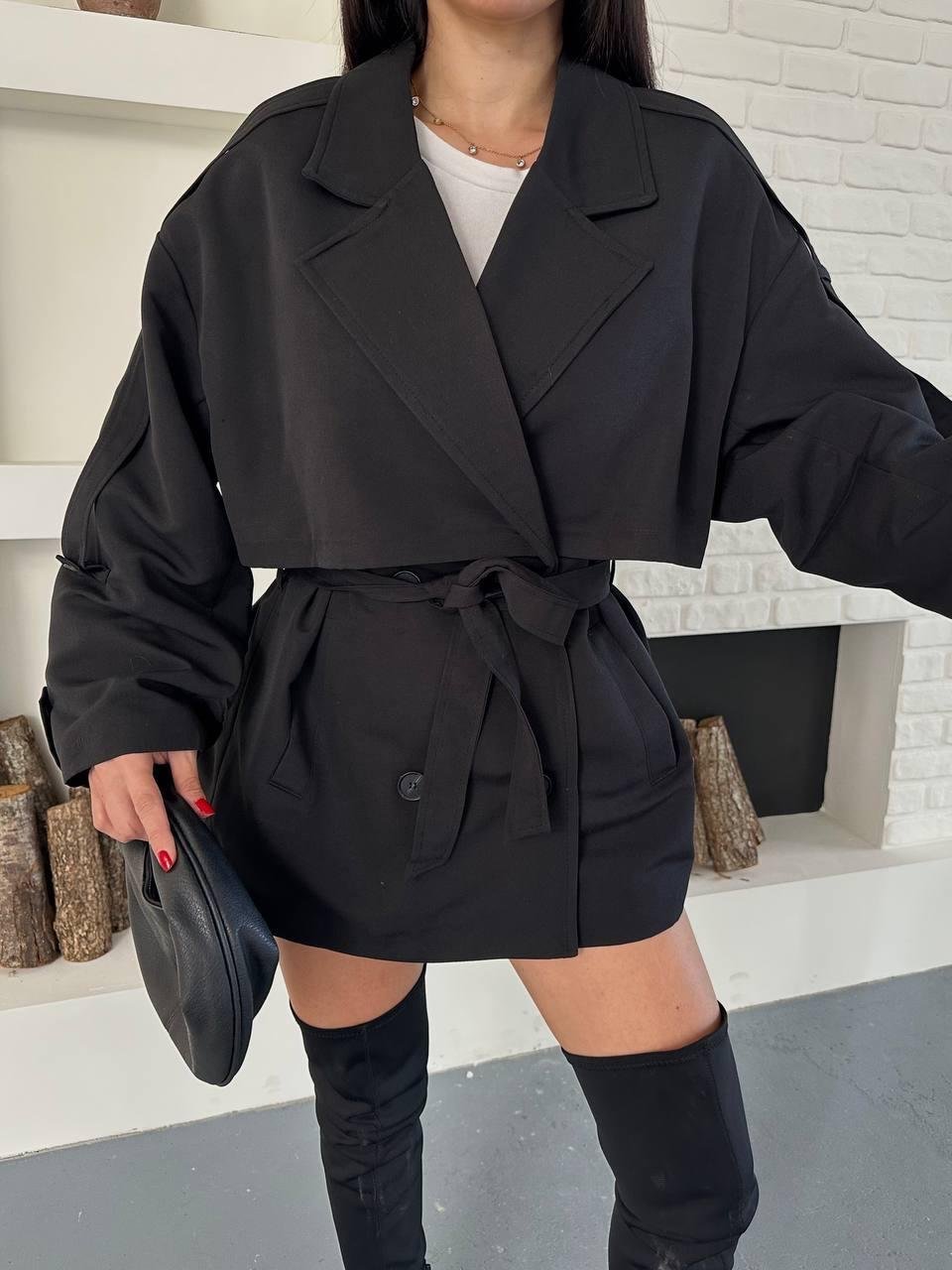 Siyah Dizüstü Düğmeli Bağlamalı Trenç