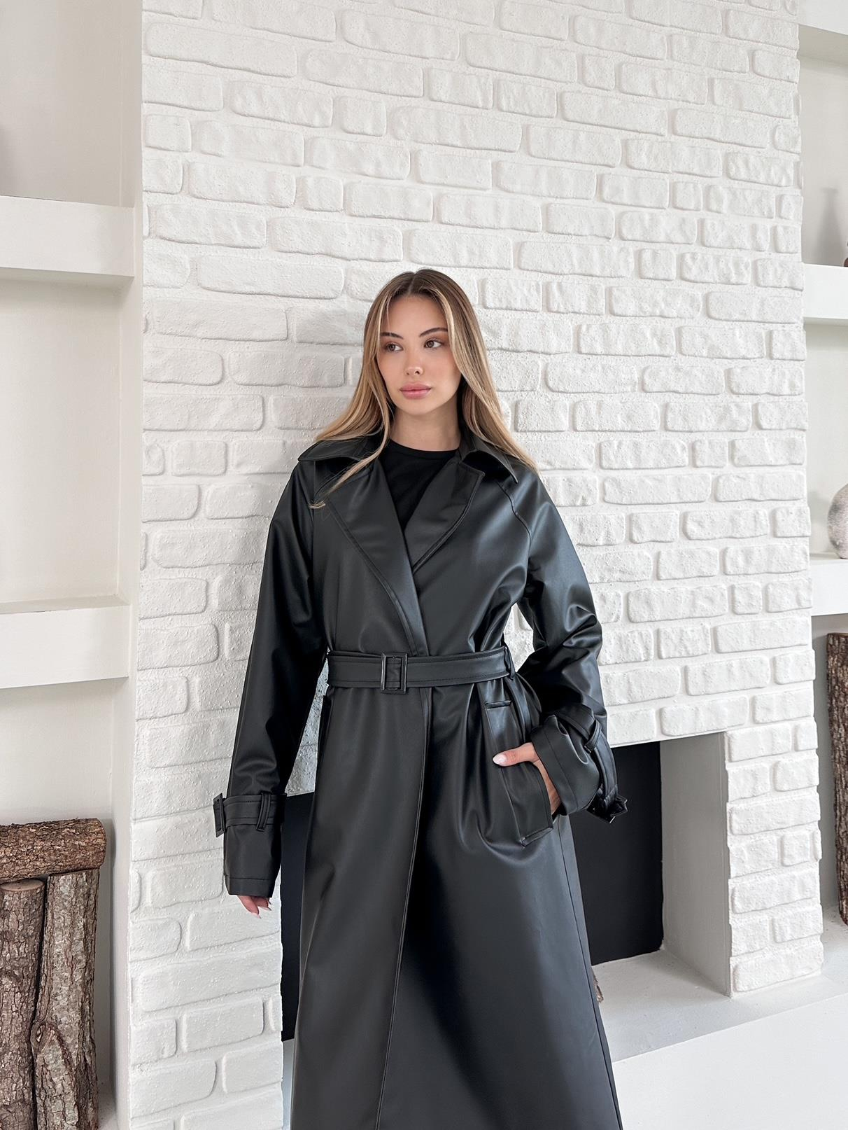 Siyah Kemerli Astarlı Uzun Deri Kaban