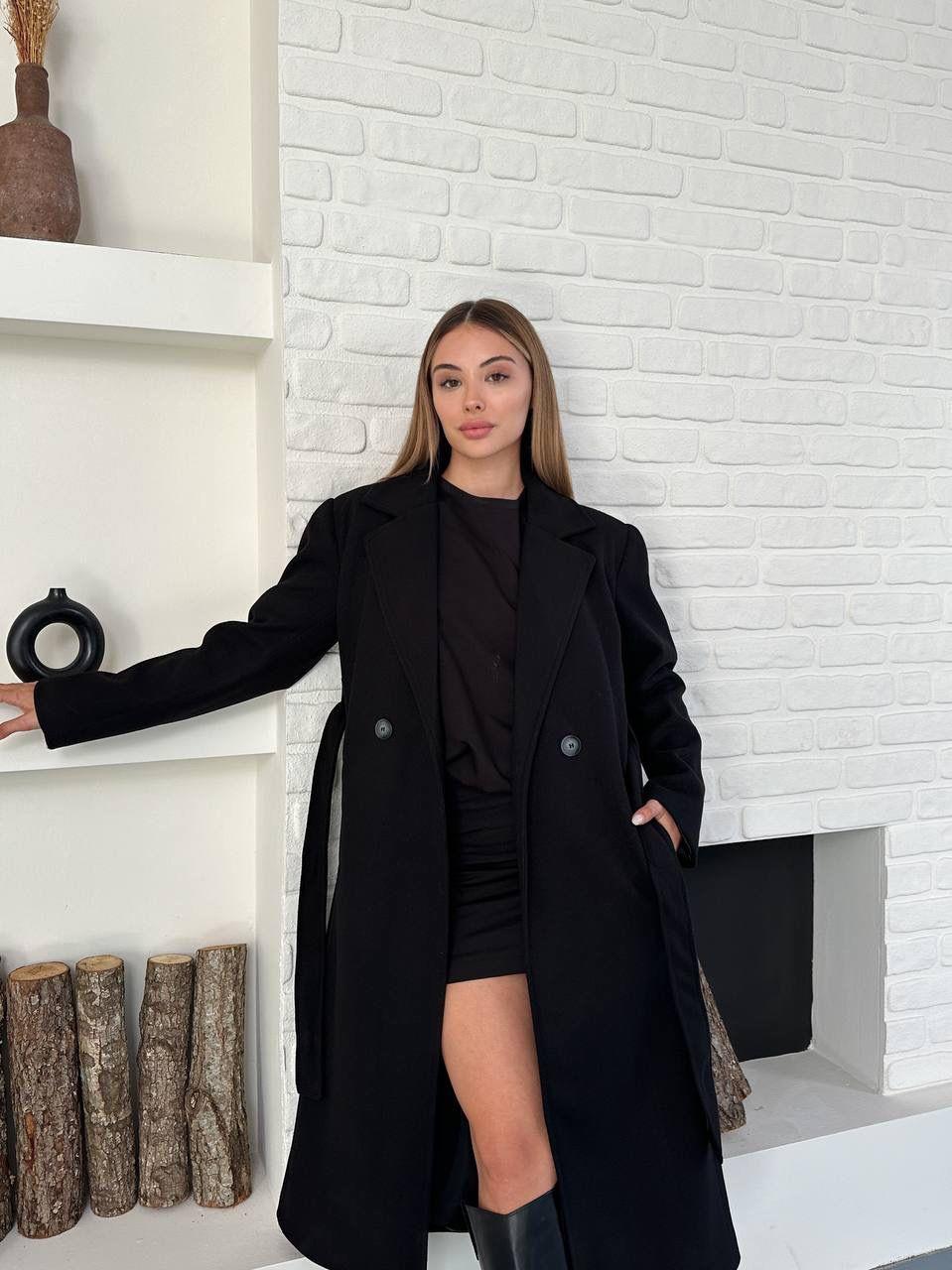 Siyah Kuşaklı Astarlı Maxi Boy Kaşe Kaban