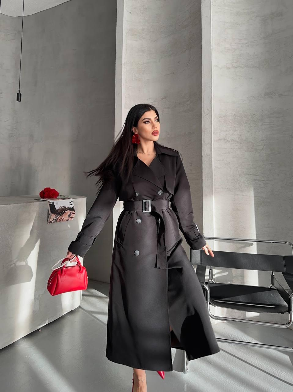 Siyah Tokalı Düğmeli Kruvaze Trençkot