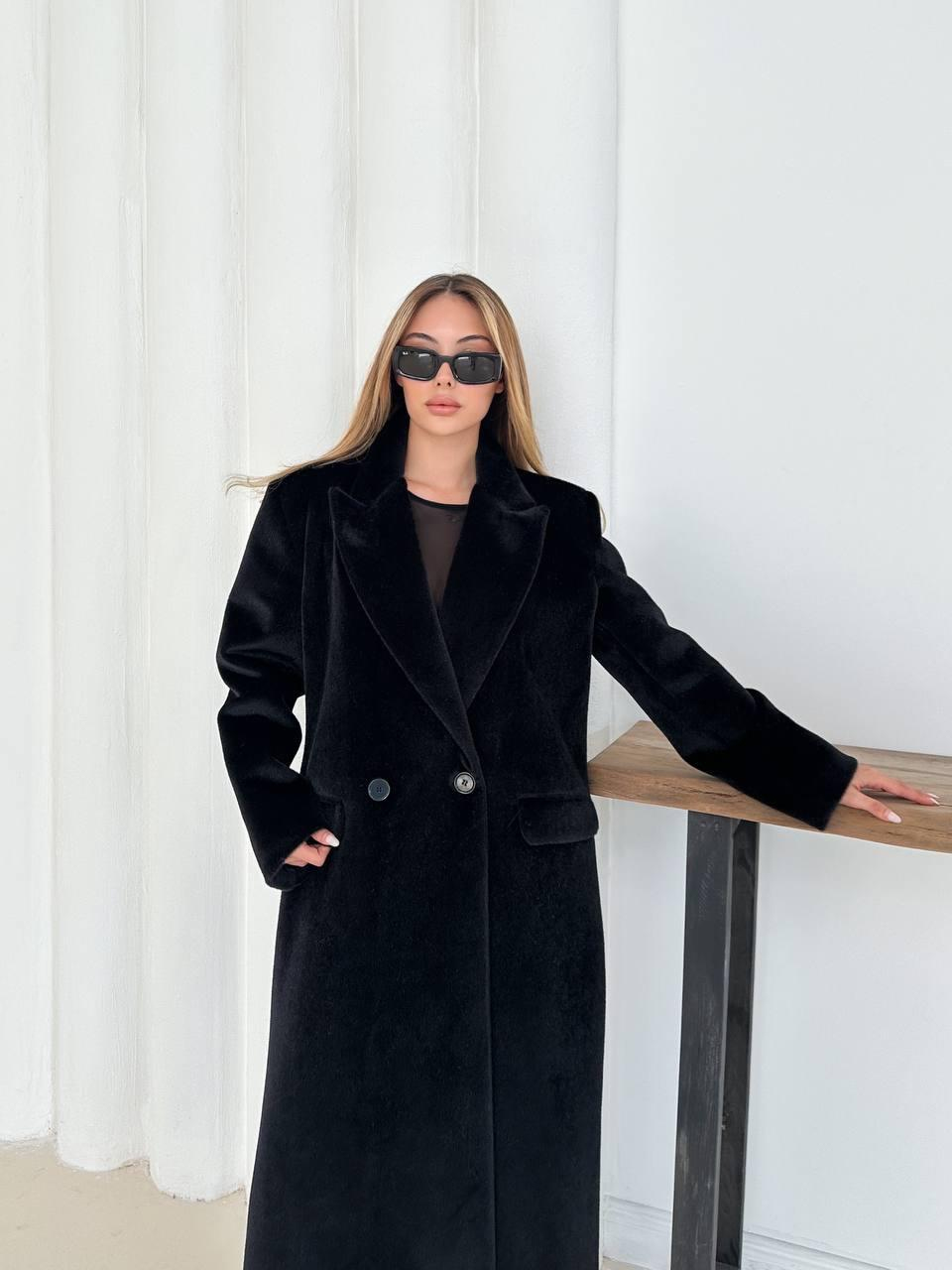 Siyah Yumuşak Kaşmir Dokulu Maskülen Maxi Kaban